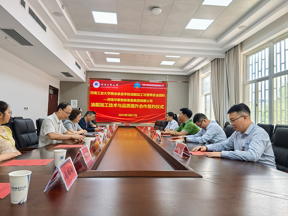 近日,河南华泰智能装备集团与河南工业大学在郑州联合举办“油脂加工技术与品质提升”战略合作签约仪式,标志着我国油脂加工领域产学研深度融合迈入新阶段。双方将依托华泰智能装备集团国家级技术平台与河南工大顶尖科研力量,围绕油脂加工领域开展深度合作,聚焦关键技术突破与产业应用转化,双方共同擘画油脂产业高质量发展蓝图,推动油脂产业品质升级。