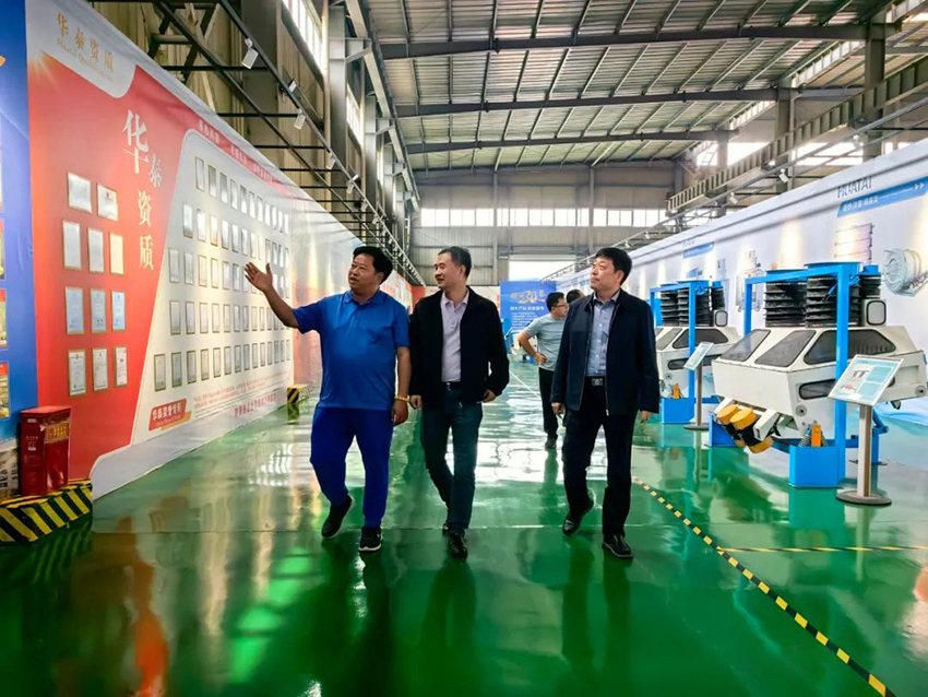 5月9日,河南工业大学设计研究院张虎总工一行在滑县人民政府副县长李红斌、滑县粮食局局长孙永生的陪同下莅临华泰智能装备集团实地调研考察,河南省人大代表、河南华泰智能装备集团董事长闫子鹏陪同调研。